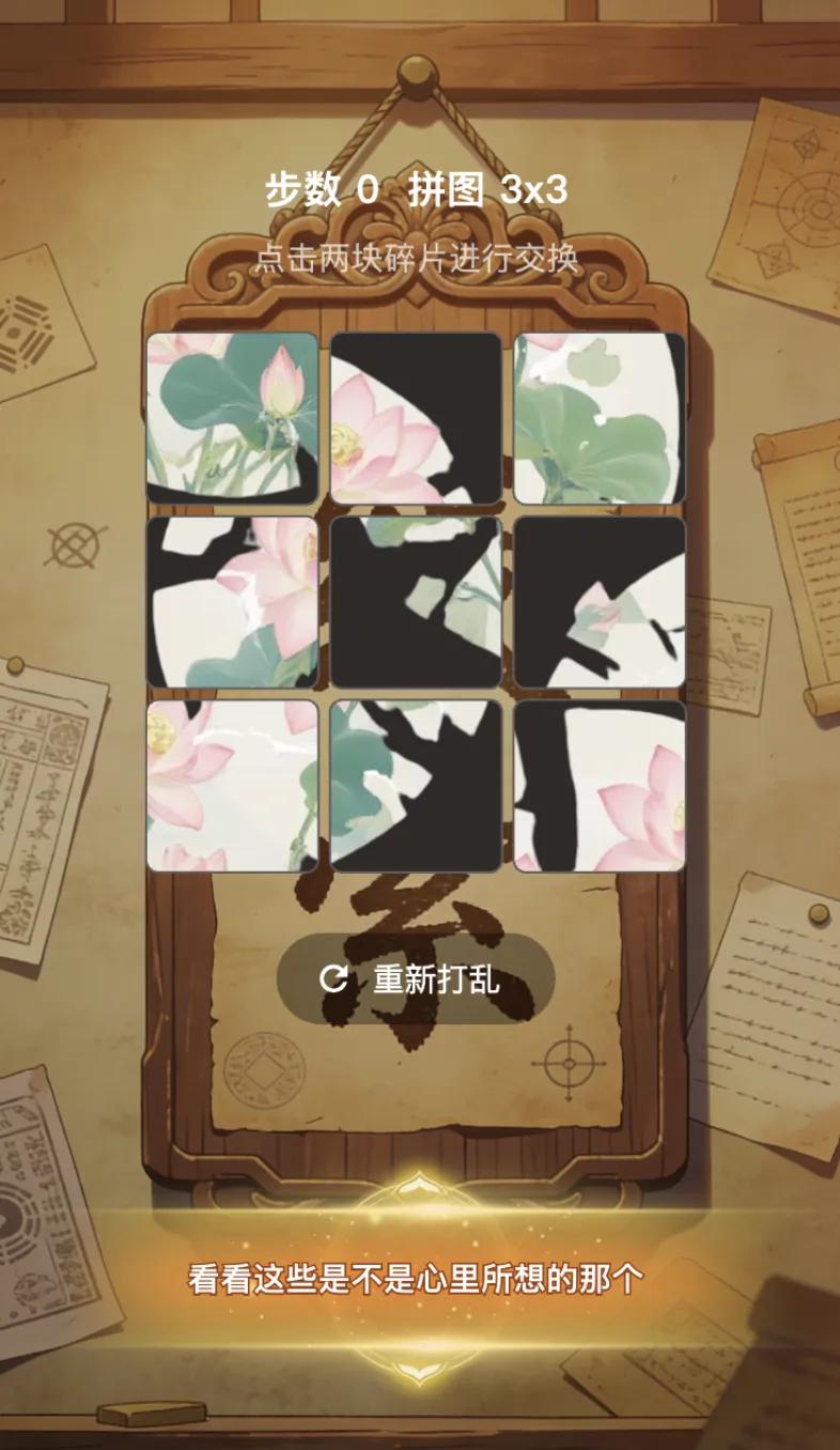 拆你就算了,AI还会实时生成相关道具和玩法,比如拆扇子时是相关主题的连连看玩法;宣纸碎片拼荷花时是拼图玩法。