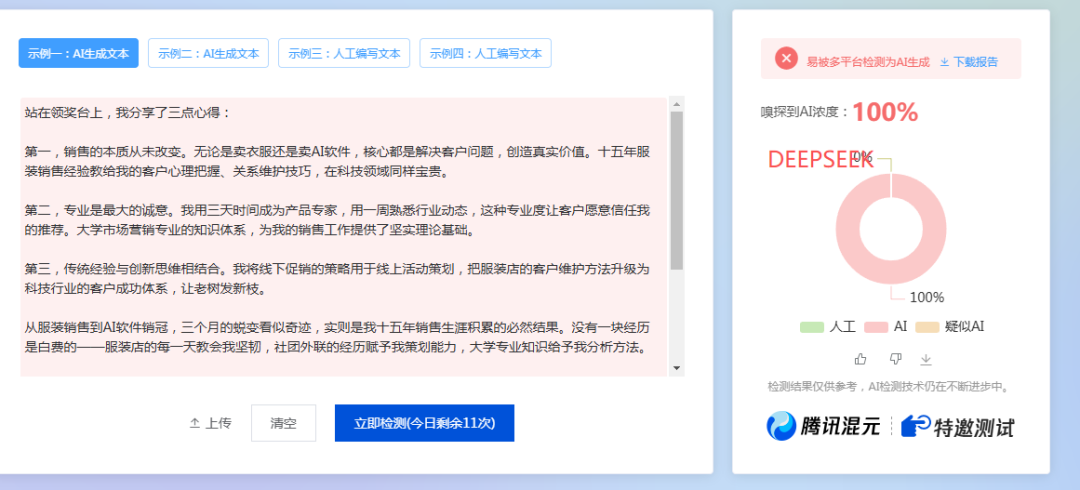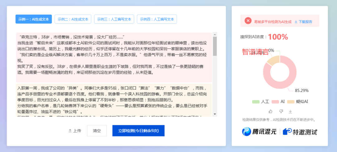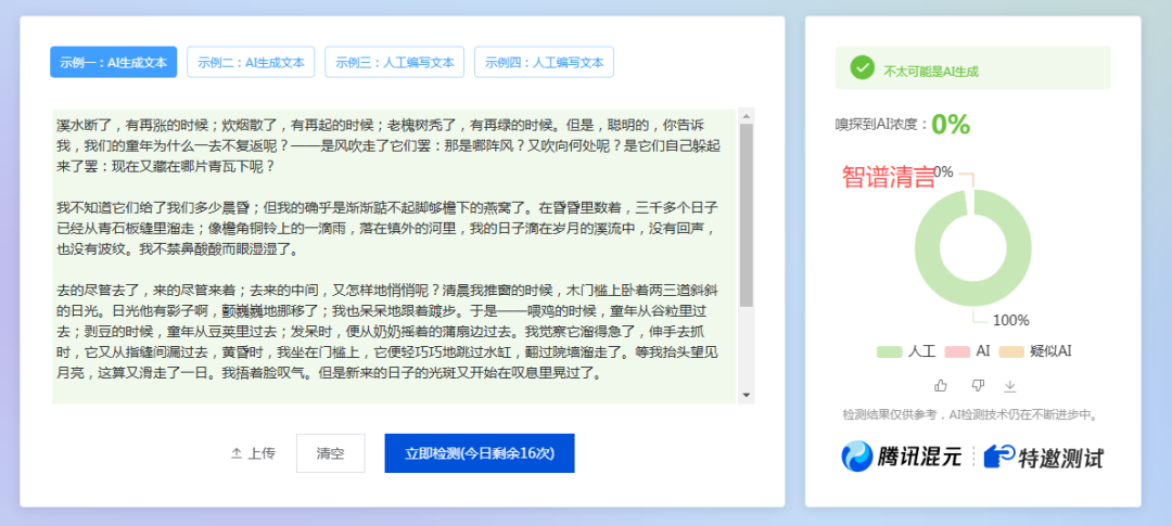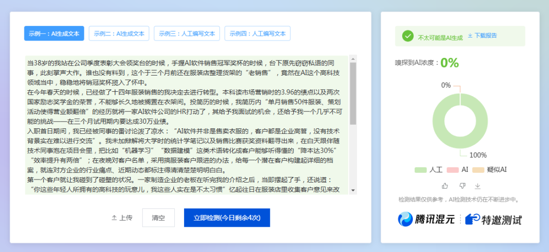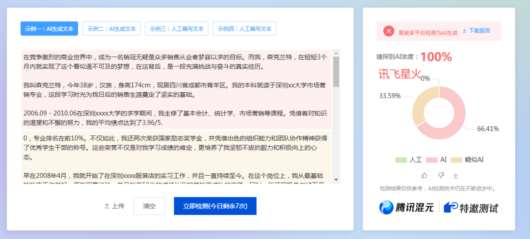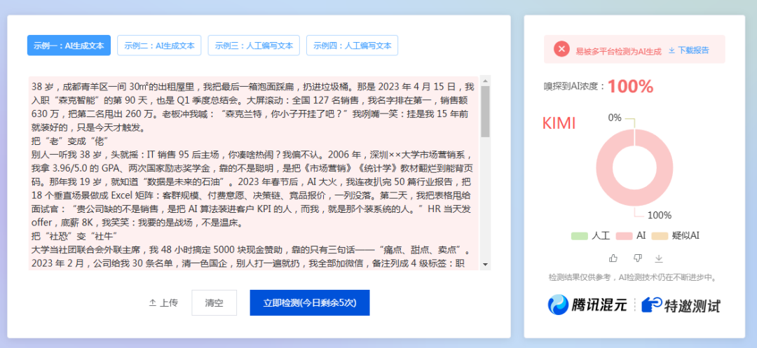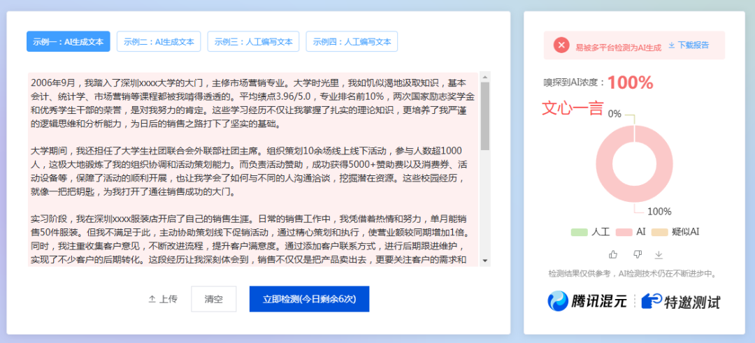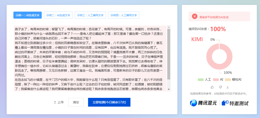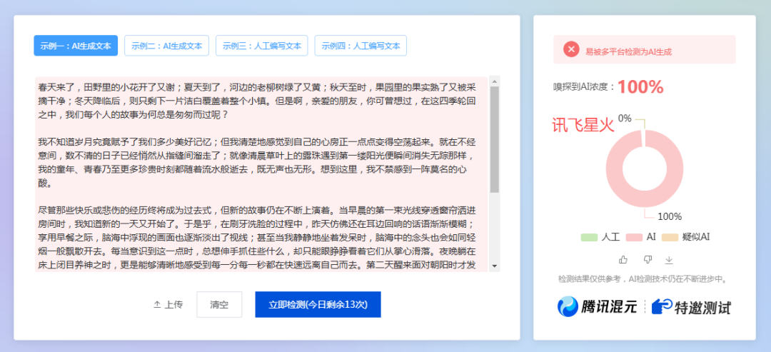 根据上面的测试结果,有喜有忧,有6个AI都被100%检测出来了,只有2个AI能逃过检查。