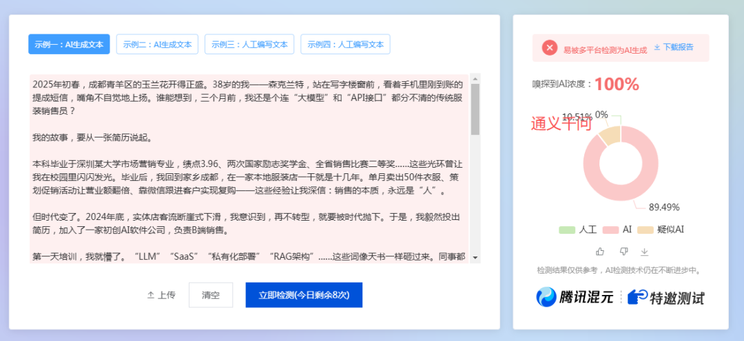 下面是8个AI写出来的测试结果,我觉得AI已经写的很好了,但是AIGC检测工具还是能检测出来,真烦!