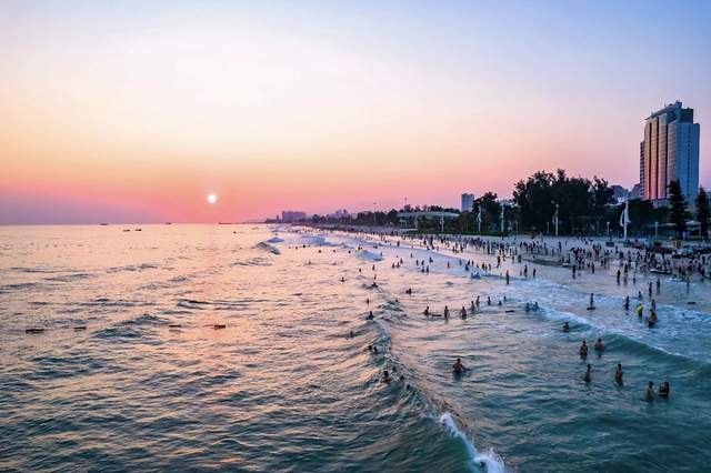 近日,我又来到银滩。夕阳下,海浪一遍遍抚平沙滩上的脚印,仿佛时间本身在擦拭痕迹。不远处,几位老人在散步,他们的身影被拉得很长,融入橙红色的光晕。