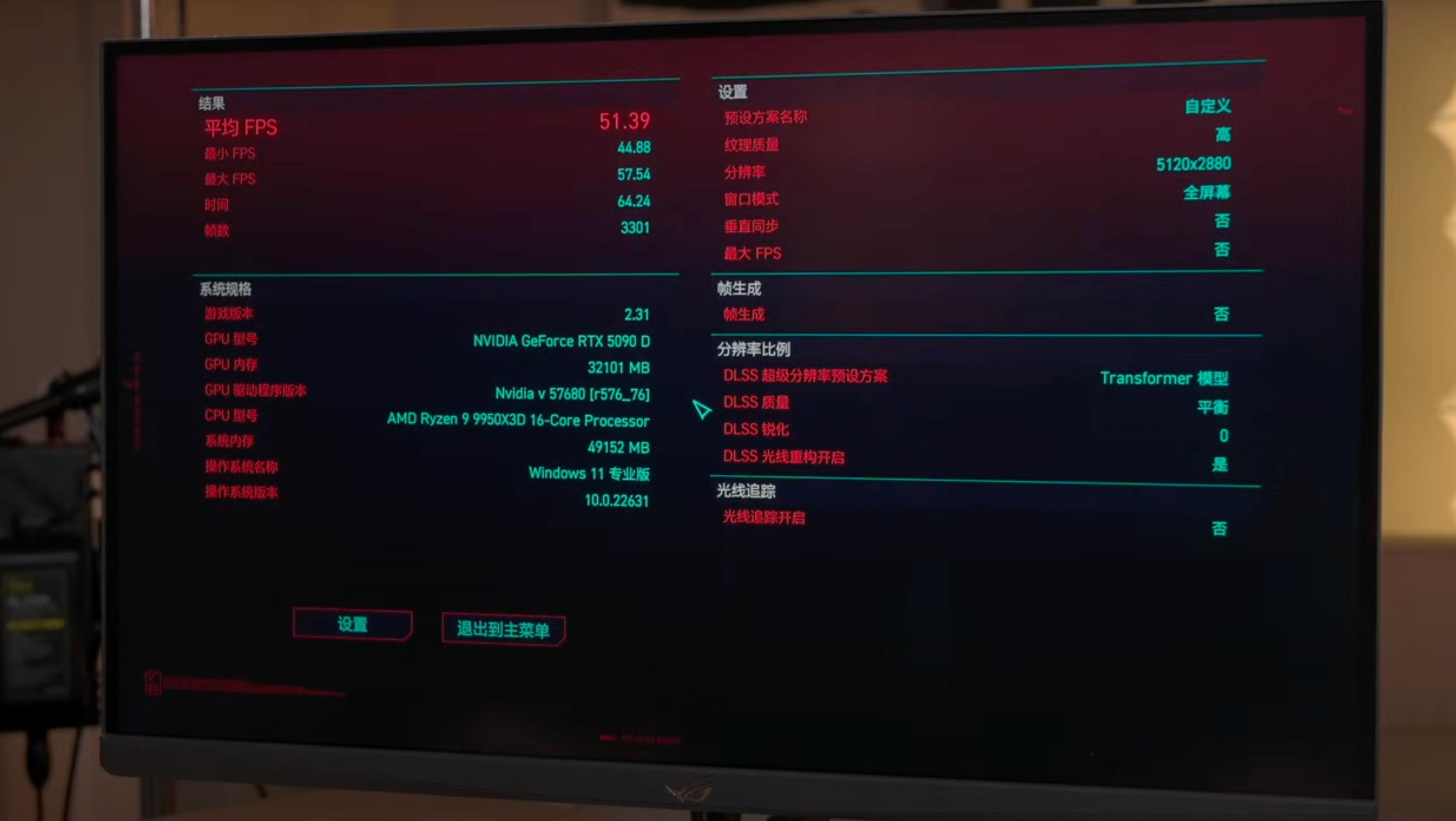 实测很残酷:RTX 5090D 也只能 51 FPS华硕自己的测试数据更扎心