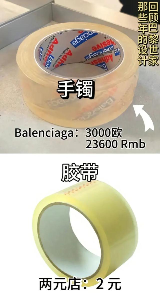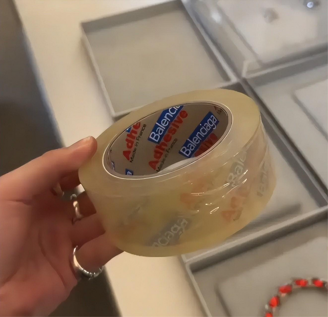 对此,巴黎世家表示,这款产品的灵感正是来源于日常生活中最普通的物品——五金店或办公用品商店出售的透明胶带,设计师们旨在将最平凡的物品赋予全新的时尚价值。