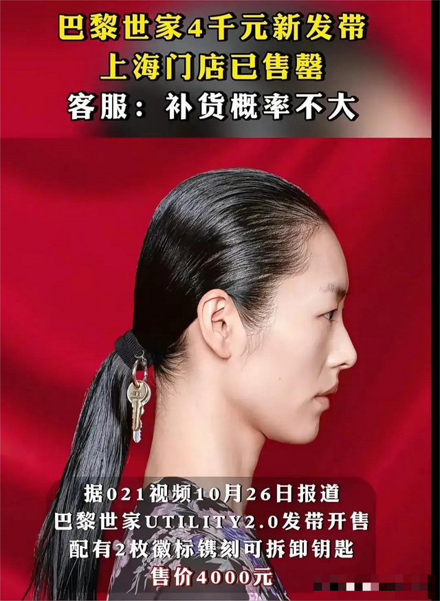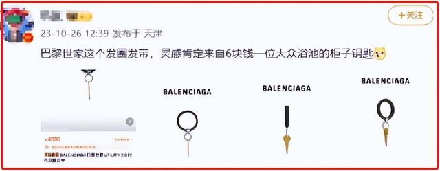 去年,该品牌就凭借一款发圈发带而遭到大众吐槽,还登上了热搜,一个普普通通的黑色头绳,再配上一个印有品牌标志的钥匙,就卖到了4000元,实在是让大家感到诧异,这不就是澡堂子里的钥匙圈吗?居然能卖4000元?