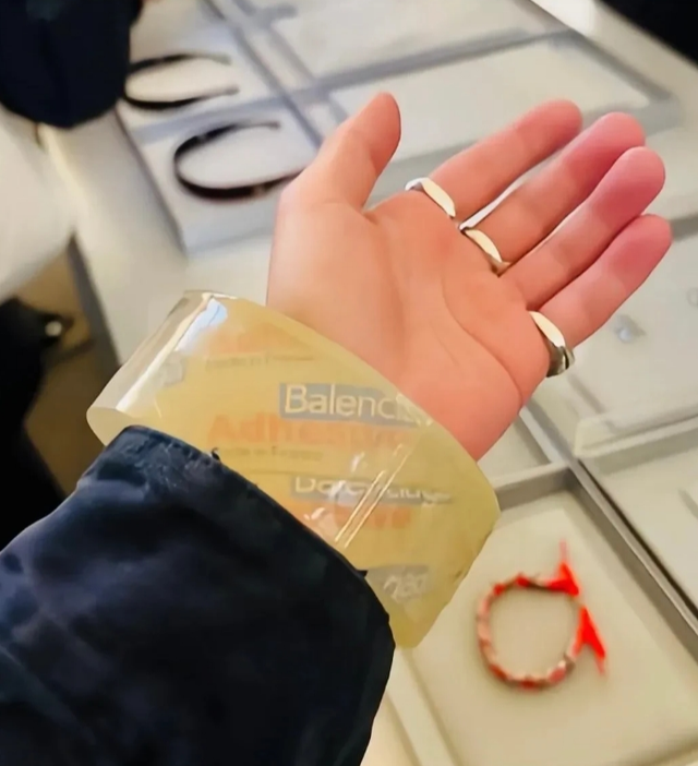 你是否曾想过,有一天你随手可得的透明胶带会摇身一变,成为价值高达23600元的时尚单品?是的,你没有听错,法国奢侈品牌巴黎世家的新品系列中便有这样一款让人瞠目结舌的手镯——胶带手镯。