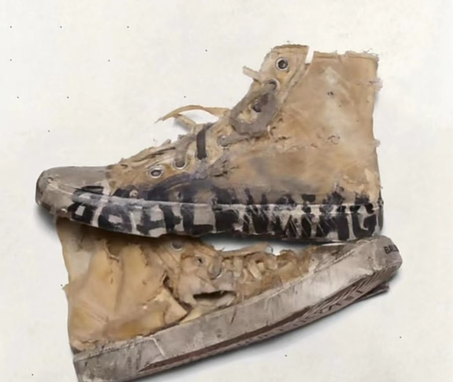 同年5月,巴黎世家又推出了一款限量版运动鞋,号称宣传环保理念,但这双鞋的表面破破烂烂,布满污垢和瑕疵,而更令人更加匪夷所思的是,这双鞋的售价高达1850美元,并且全球只有100单。