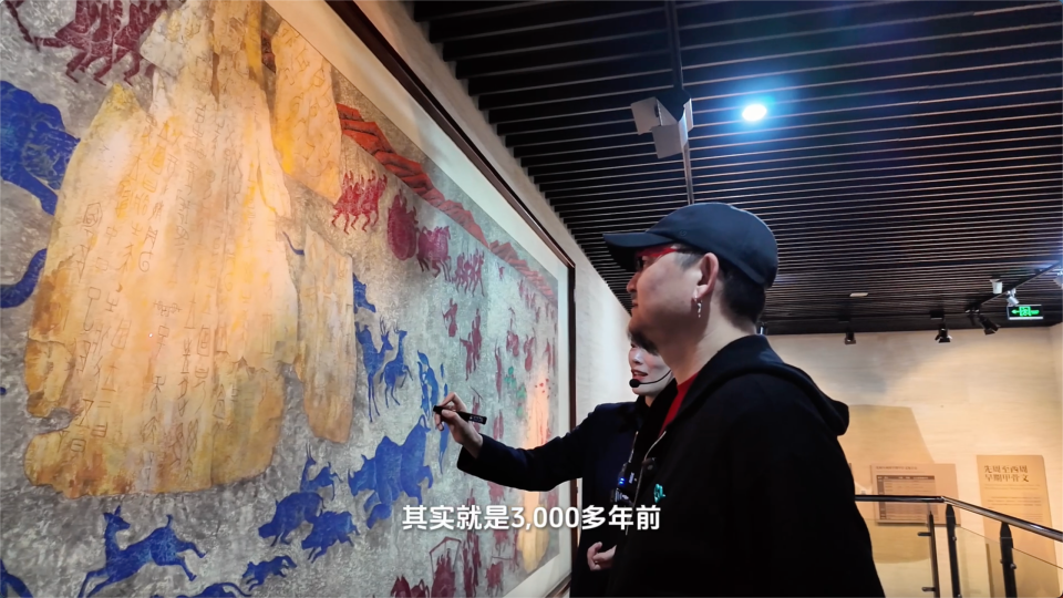 在中国文字博物馆,乌尔善对着甲骨文“中国”久久凝视。他在“乌log”中表示:“现在我们用的中文汉字,其实就是3000多年前(祖先)他们在使用的这个符号(甲骨文)。而我们能够通过文字,能够回到那个时代,他们在表达的东西,我们现在一看那个文字就能看懂,其实很幸福。我们能够跟祖先在一起,能够把之前创造的东西都为我们现在所用,我觉得这个挺重要的。”