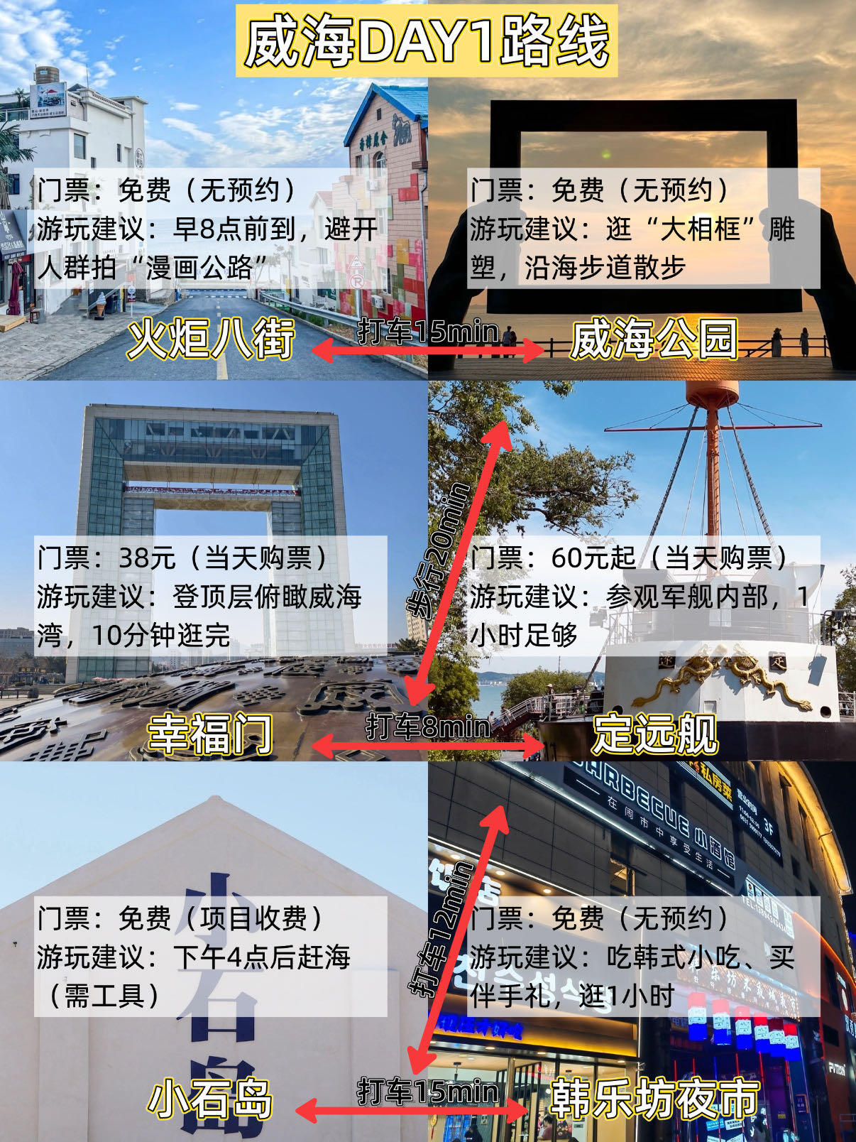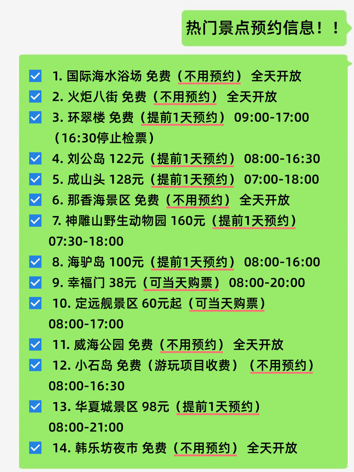 • 预约提示:刘公岛、环翠楼等需提前1天预约,免费景点无需预约