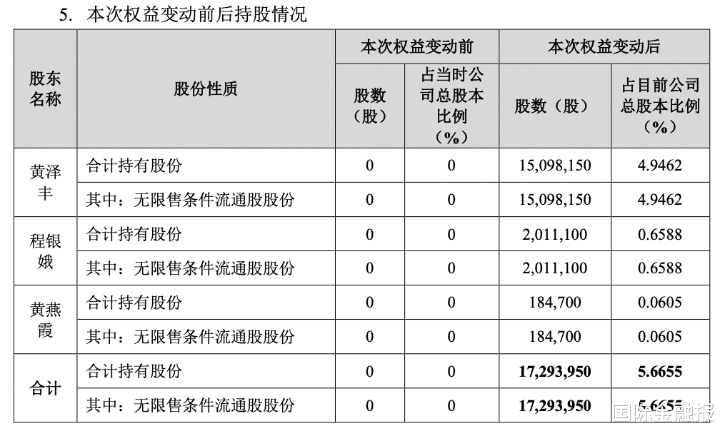具体来看,黄泽丰于2024年10月18日至2024年11月7日买入高澜股份约1509.82万股,约占总股本的4.95%;程银娥于2024年10月18日至2024年11月7日买入高澜股份201.11万股,约占总股本的0.66%;黄燕霞于2024年11月6日至2024年11月7日买入高澜股份18.47万股,约占总股本的0.06%。而在此之前,三人均未持有高澜股份股票。