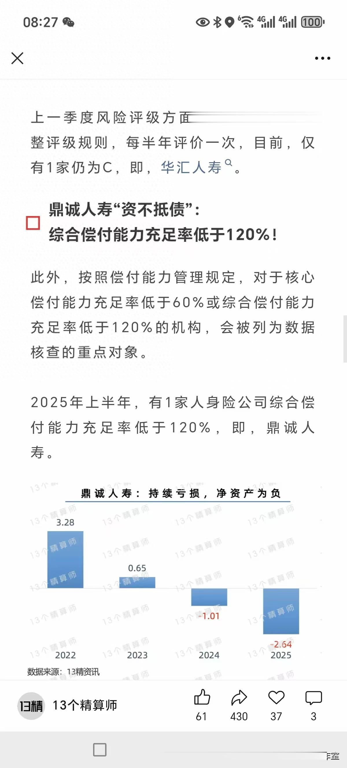 看看13精发布的帖子里有对鼎城人寿的数据披露。我们不做评级,只是提醒大家手里有鼎城人寿保单的朋友,一定多多关注着点公司动态。
