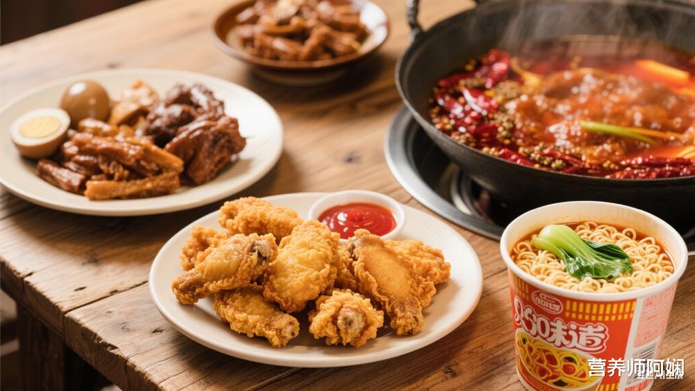 而且你有没有发现,吃得咸的人,往往也吃得油、吃得多。 比如咸香的炸鸡、火锅、卤味、方便面……这些重口味食物,不仅钠高,热量也高,经常吃会导致肥胖、代谢紊乱,更容易踩中“高血糖”的雷。