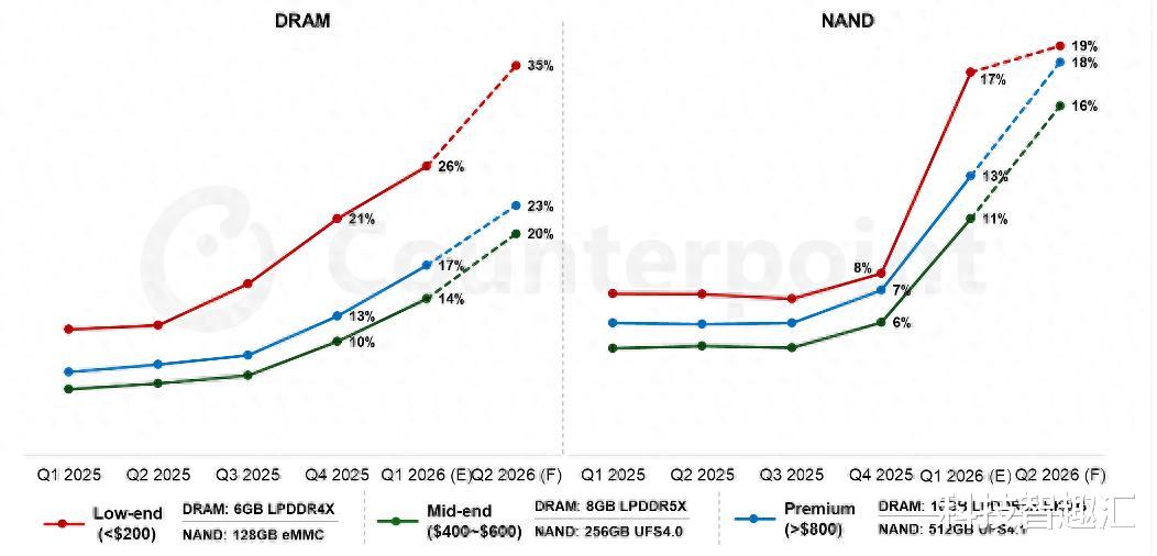 2026年,智能手机行业的第一场"价格风暴"已经提前到来,多家品牌官宣上调零售价,引发市场广泛关注。这场涨价潮的背后,是不可忽视的存储芯片成本上涨压力——第三方研究机构Counterpoint最新研报指出,入门级产品2026年第一季度总物料清单成本环比增长超过20%。