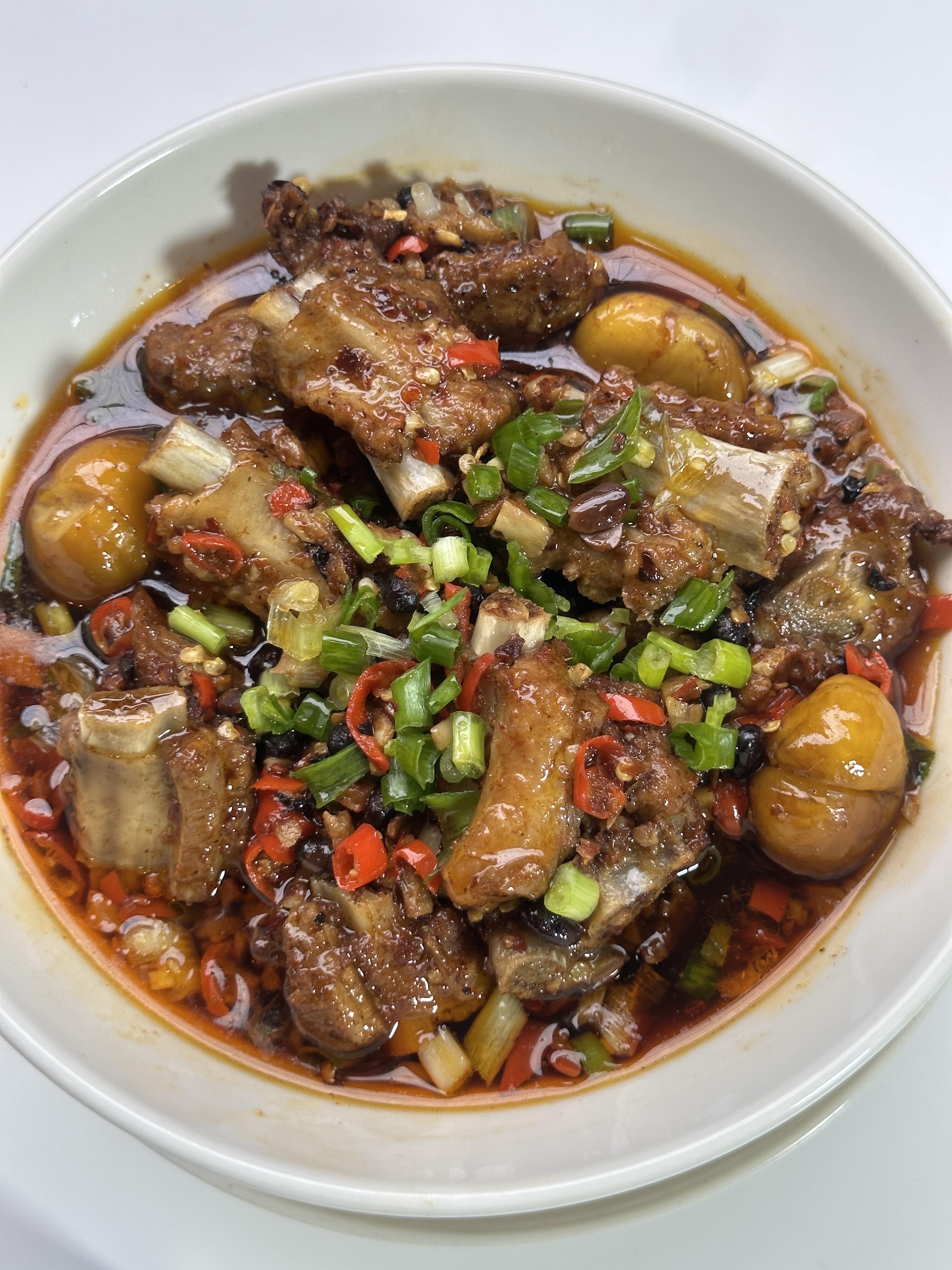 排骨先用料酒和淀粉抓洗一下,这样可以去除血水和腥味。然后,用清水泡出血水,沥干水分备用。板栗如果是带壳的,要先煮熟再去壳;如果已经是去壳的,就直接清洗干净。姜蒜切末,小米辣切碎,豆豉稍微剁一下,辣椒面根据个人口味准备,葱花切好备用。