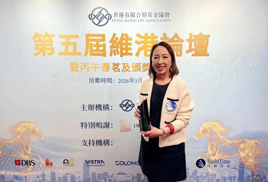 3月16日,由香港有限合伙基金协会举办的2025年度第五届维港论坛在香港举行,活动聚焦有限合伙基金(LPF)领域的前沿趋势与实践成果,吸引了一众金融机构与行业专家参与。毕马威凭借在审计及税务服务领域的卓越表现与突出贡献,在本次论坛中荣获“香港有限合伙基金优秀审计及税务服务机构”奖项。毕马威中国香港特别行政区证券和资产管理主管及金融服务业香港主管合伙人徐明慧受邀出席颁奖典礼,代表公司上台领奖。