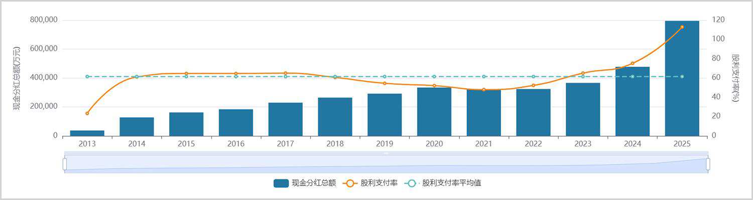 更令市场惊喜的是2025年的高分红。全年通过中期、年度、特别分红等多种方式,累计分红额为79.5亿元,分红率高达113%,并且公司承诺到2027年,分红率均不低于80%。