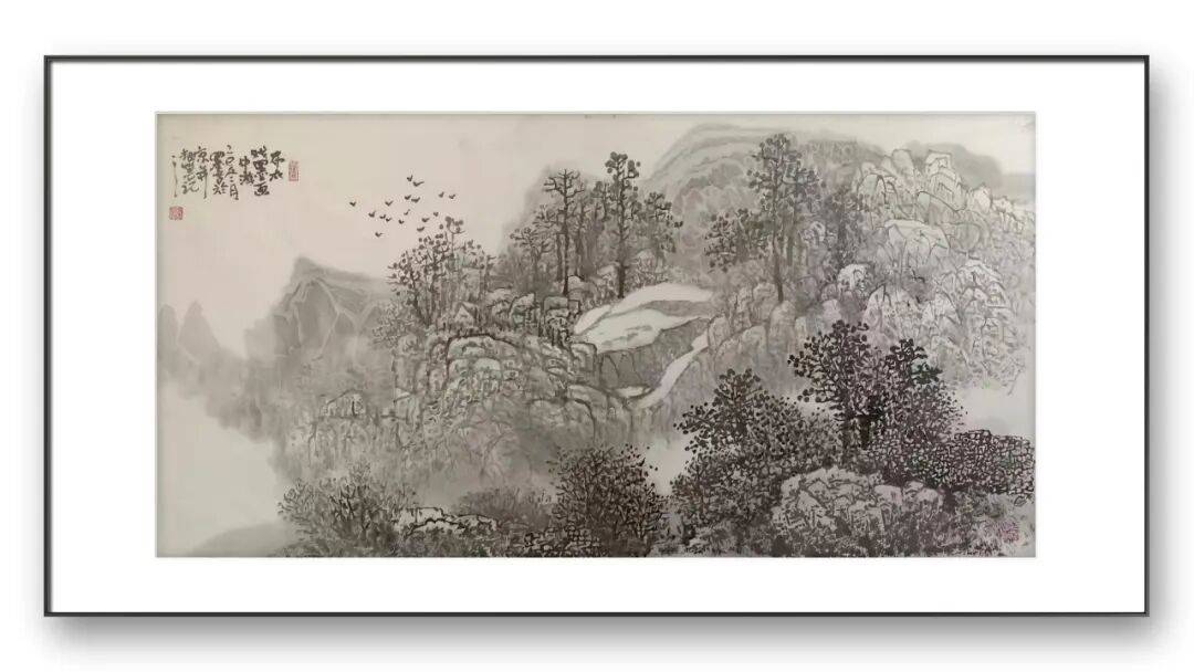 难能可贵的是,邵建刚先生的山水画并未局限于传统的桎梏,而是在传承中寻求创新,融入了鲜明的时代气息。他将当代生活中的审美感悟与山水创作相结合,在题材选择、色彩运用等方面都展现出新颖的视角。在题材上,他不仅描绘名山大川,也关注寻常百姓的生活场景,将田园风光、乡村新貌等元素融入山水画中,让作品更具生活气息与时代温度。在色彩运用上,他打破了传统山水画以水墨为主的单调格局,适当融入淡雅的色彩,既不张扬刺眼,又能为画面增添生机与活力。作品中,他以淡淡的绿色描绘初生的草木,以浅粉点缀山间的桃花,与水墨的黑白灰相互映衬,既展现了江南春天的生机盎然,又不失传统山水的雅致韵味。这种创新并非对传统的背离,而是在传统基础上的升华,让山水画在当代语境下焕发出新的生命力。