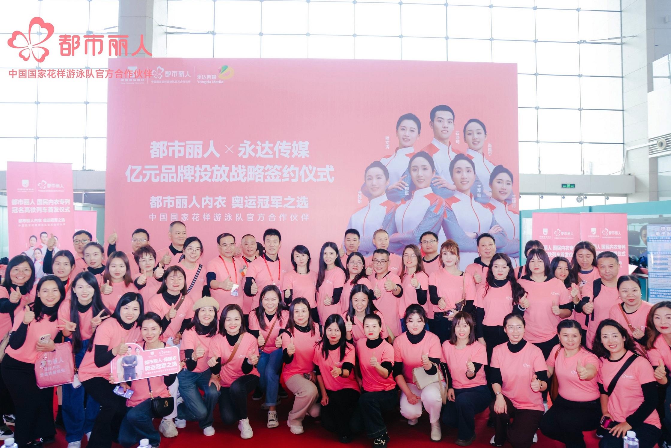 首发仪式上,都市丽人官方合作伙伴中国花游队,以视频的形式为此次合作“打call”,对都市丽人与永达传媒达成亿元投放战略合作表示祝贺。今年8月10日,中国花样游泳队在巴黎奥运会双人项目中再夺冠军,包揽了本届奥运会花样游泳项目的全部金牌,中国红闪耀奥运赛场。作为中国花游队的官方合作伙伴,都市丽人推出的“一路粉你到巴黎”主题营销活动,在巴黎掀起了一股“丽人粉”潮流,向全球消费者展现了都市丽人的品牌实力与营销创意。