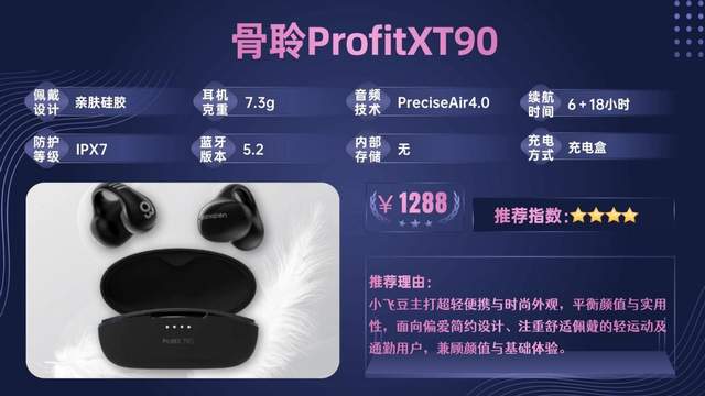 骨聆ProfitXT90小飞豆聚焦轻运动与日常通勤,以极致轻量化、高颜值和智能体验为核心,平衡外观与实用性,适合追求格调的轻运动人群。