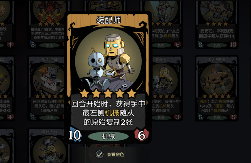 除此之外,还有一张卡,虽然不在最终阵容里但也十分关键,那就是装配师,他可以帮你复制机械牌,以前玩红茶最难受的就是合成金色,有了它三个回合以后就可以轻松拿到,非常爽。
