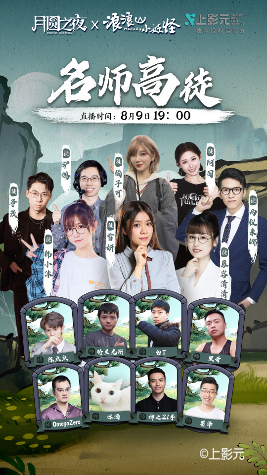 《月圆之夜》最近新动作不断,8月2日和“浪浪山小妖怪”开启联动,8月9日「名师高徒」活动也要开启了,这一次请到的高徒都是知名卡牌游戏主播,比如驴哥、韩小沫、雪妍、慕容清清和橘子可等等。