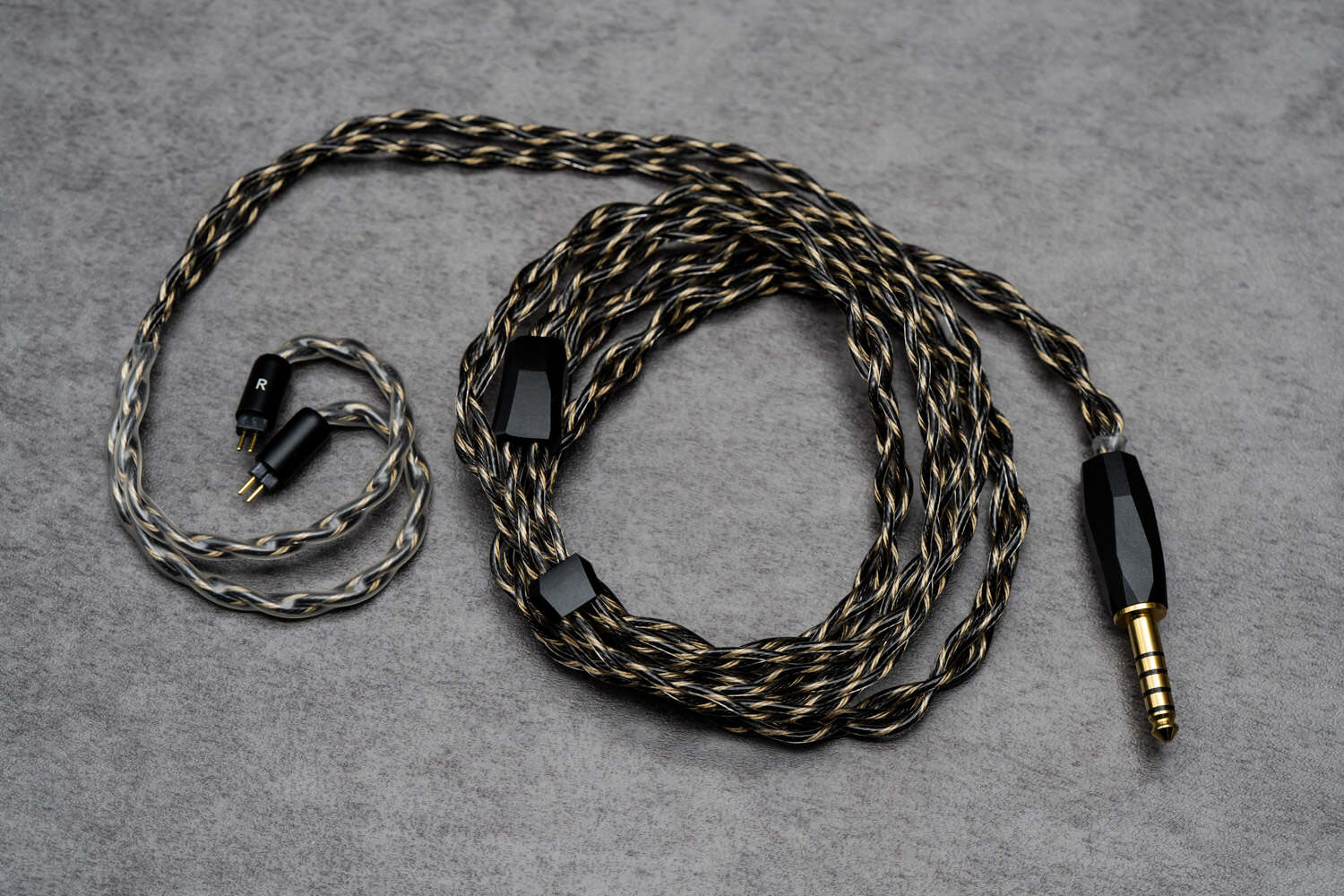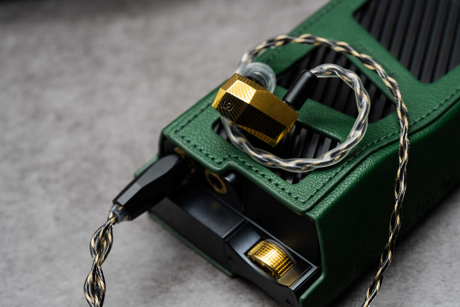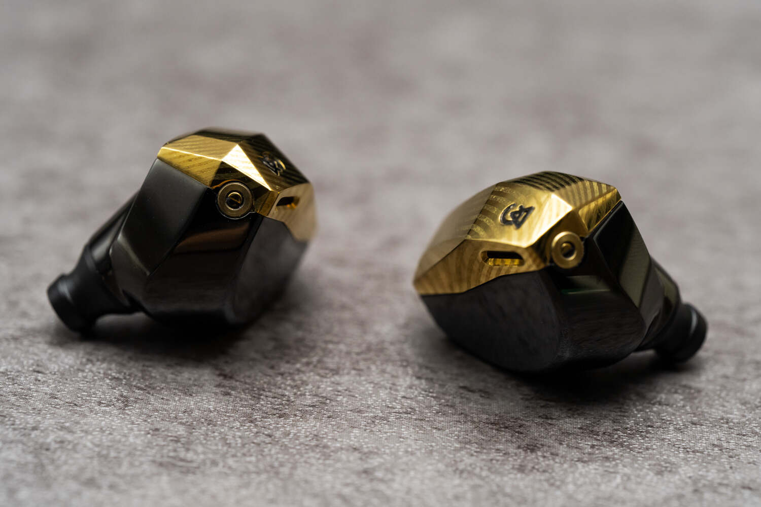 仙女座十周年SE的腔体外壳有金色和黑色可选,两者都带有大马士革钢的纹路,金属质感很强,金色贵气而黑色深邃。腔体尺寸不小,呈独特的“糖块”形,导管位置独特,导管口是仙女系列经典的圆孔设计。幸运的是这样棱角丰富的多面体造型,佩戴却很舒适,只要留意佩戴角度,就可以使耳朵避开腔体的棱角而只和内侧接触,搭配合适的耳套即可实现几乎完美的佩戴。由于外壳的不锈钢有一定的重量,佩戴时间过长的话会有点坠胀感。另外,仙女座十周年SE的一个“巨大”改进,终于放弃了MMCX转为0.78 2Pin可换线接口,对于爱折腾线材的玩家来说是个不折不扣的好消息。