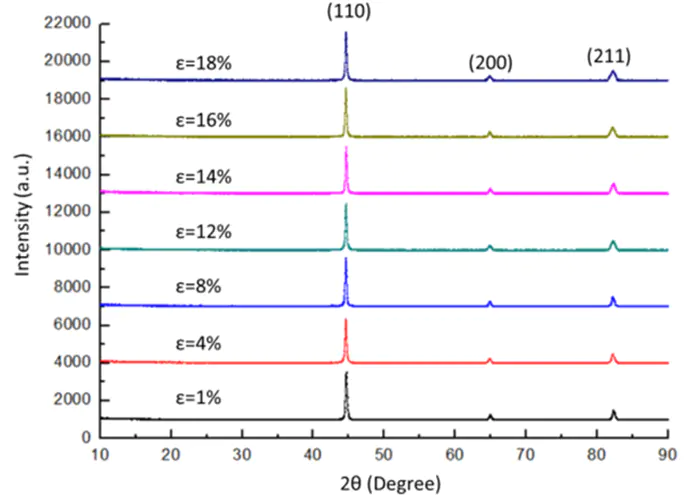 如果衍射峰相比于标准样品(通常是大晶粒、无应变的标样)显著变宽,且峰形基本保持对称,这通常意味着存在微观应变或晶粒尺寸减小不对称性宽化:,这往往暗示着应变梯度的存在。