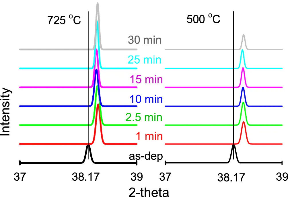 布拉格方程dθnλd是衍射角。当晶格发生均匀的膨胀或收缩时,晶面间距会系统性地增大或减小,从而导致所有衍射峰向着一个方向集体移动。
