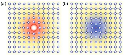 :如空位、填隙原子、替代原子等,会引起周围晶格的局部弛豫和畸变。