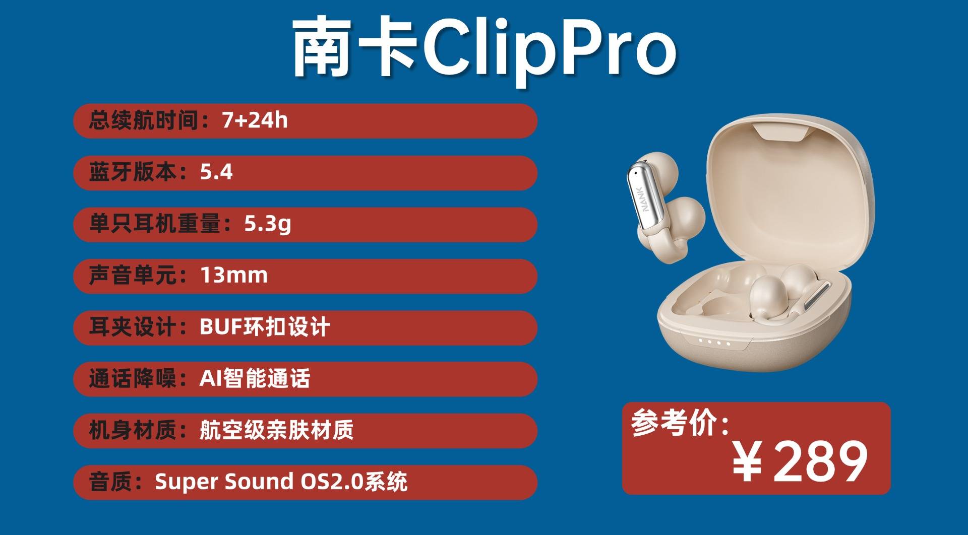 南卡Clip Pro是以“高性价比+高性能”爆火网络的款式,本身出自专业开放式老牌南卡旗下,这个品牌这两年也是经常霸榜开放式耳机口碑排名。作为一款百元级的耳夹式开放耳机,它没有学很多品牌通过砍掉核心体验来换取更低低价格来吸引用户,而纯粹通过选材、技术、工艺创新等,来提高体验。音质上,拥有新一代MCW多层复合宽环振膜+Super sound OS2.0发烧级声学系统的组合,这是南卡凭借这13年的音频研发经验,研发出的更适合耳夹式耳机的传音结构,将声音细节直线拉满!佩戴上,突破性地采用了BUF环扣人体工学设计,以及C-Hook2.0的全新佩戴方案,单个耳机仅5.1g,更贴合人耳,实现0压0感的佩戴体验!