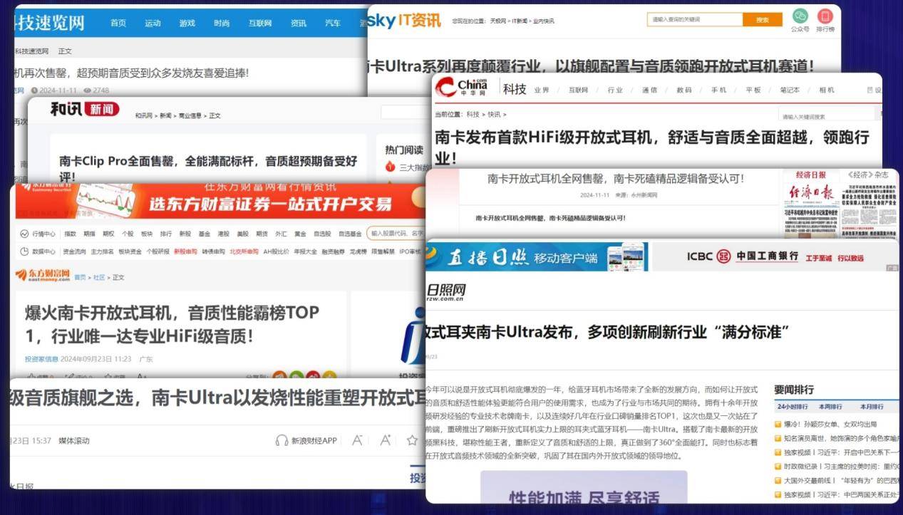 目前耳机市场中有七八成用户,都在吐槽开放式耳机里存在漏音问题严重,音质差,佩戴舒适度低。而南卡是为“舒适与高性能”而生的专业老牌,坚持着专业的发烧级品质研发标准,目前南卡已成为开放式耳机市场中第一梯队的品牌,从原器件到成品的三个环节,都对30%的产品进行了淘汰,公认市面上最为严苛,如今被媒体誉为:“开放式耳机中音质最好的品牌”,做到与Bose、森海塞尔等高端系列音频品牌齐名。出口欧美,罕见获CCTV央视推荐,欧盟等多国认证!