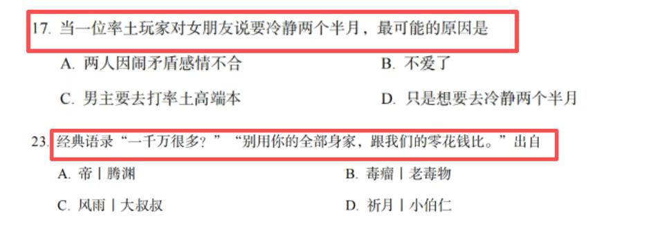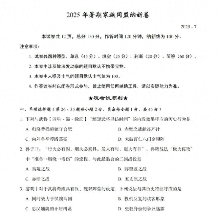 居然自发搞了个 “率土教委”,暑假还真把自己当 “老师”,搞了场 “出题纳新” 活动。本来大伙儿以为进游戏家族,顶多就是报个 ID、跟兄弟伙打两场配合赛,结果点开报名链接一看,好家伙,直接跳出一套 “文化摸底卷”,连选择题都透着股 “不按常理出牌” 的劲儿。