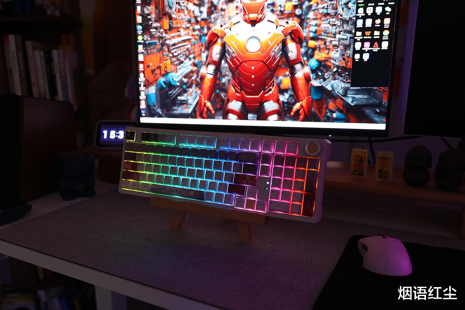 在个性化方面也做到了极致,RGB背光系统支持1600万色自定义,内置22种动态灯效,如彩虹波浪、呼吸渐变等,我们还可通过网页驱动或快捷键自由调节。灯光均匀柔和,不刺眼却富有沉浸感,满足了游戏氛围营造或暗光环境使用的需求。