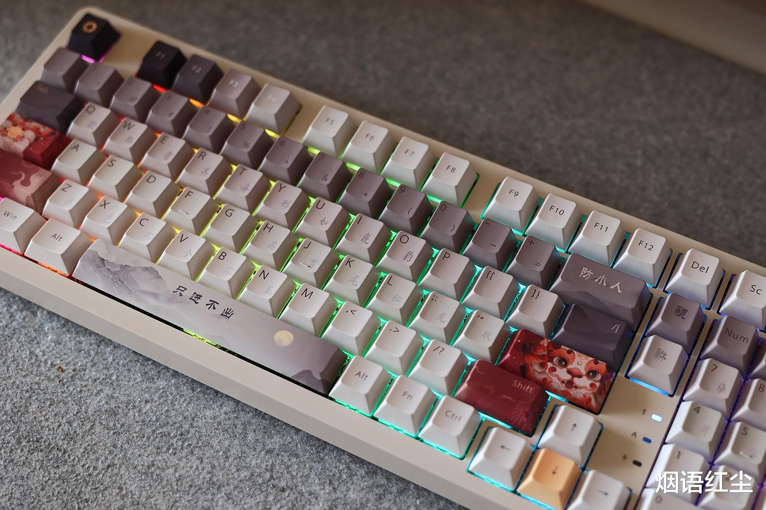 在中国传统文化中,貔貅是招财纳福、镇守财库的瑞兽,以其只进不出的特性寓意财富汇聚。键盘巧妙地将这一文化图腾融入设计,键帽上精致的貔貅图腾与祥云纹样,通过五面热升华工艺令其栩栩如生,在我们使用时也能感受其守护之力。