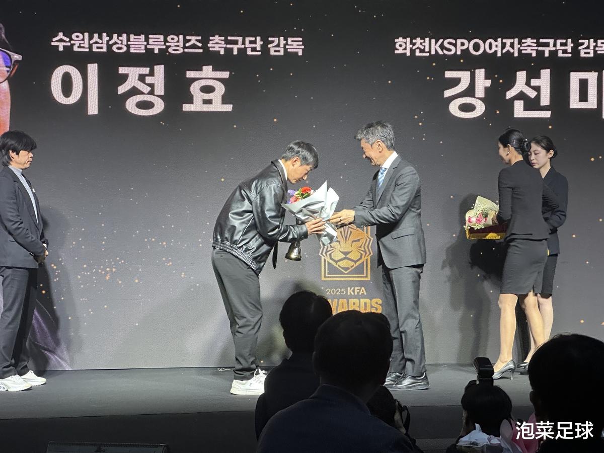 2025年度,虽然李侹晓是球迷和舆论心中的“网红教练”,但无论是K联盟的最佳,还是足协杯的最佳,都没有他的名字。不过这并不代表他没有被认可。2月24日,韩国足协举行了2025年度颁奖典礼,最佳男子足球队主教练的殊荣归属了水原三星蓝翼主帅李侹晓,这也表明,李侹晓已经得到了韩国足协官方的认可,再也不是“理论意义上”的足球教练了。