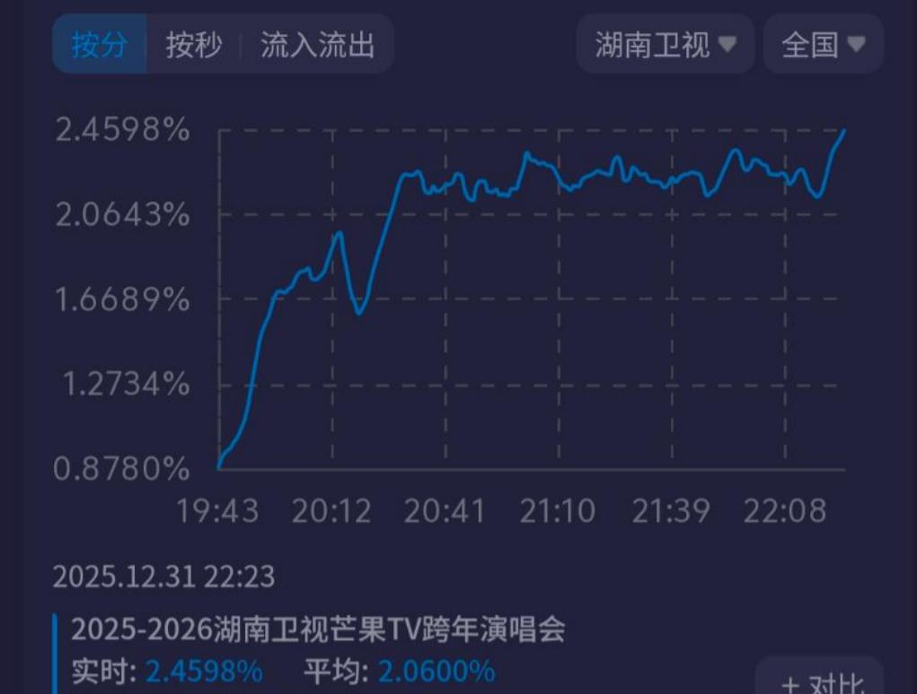而真正的封神时刻,当属倪萍与赵本山儿子赵一楠的同台环节,收视直接突破2.45%,创下湖南台跨年晚会史上最高纪录。