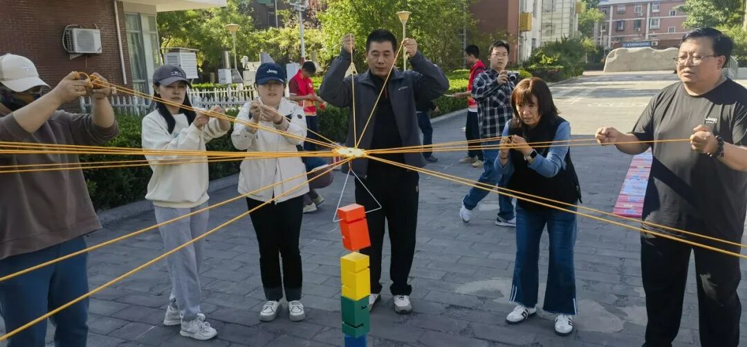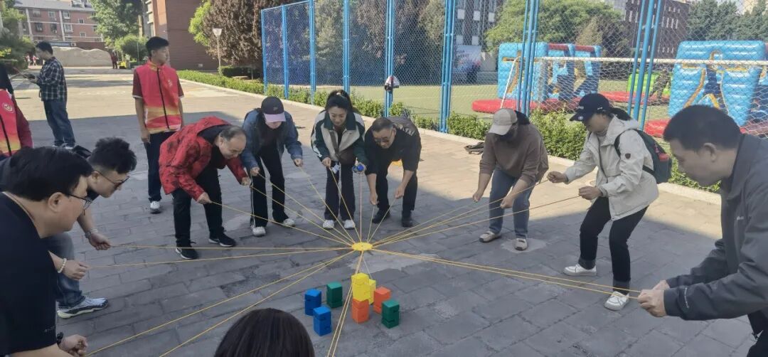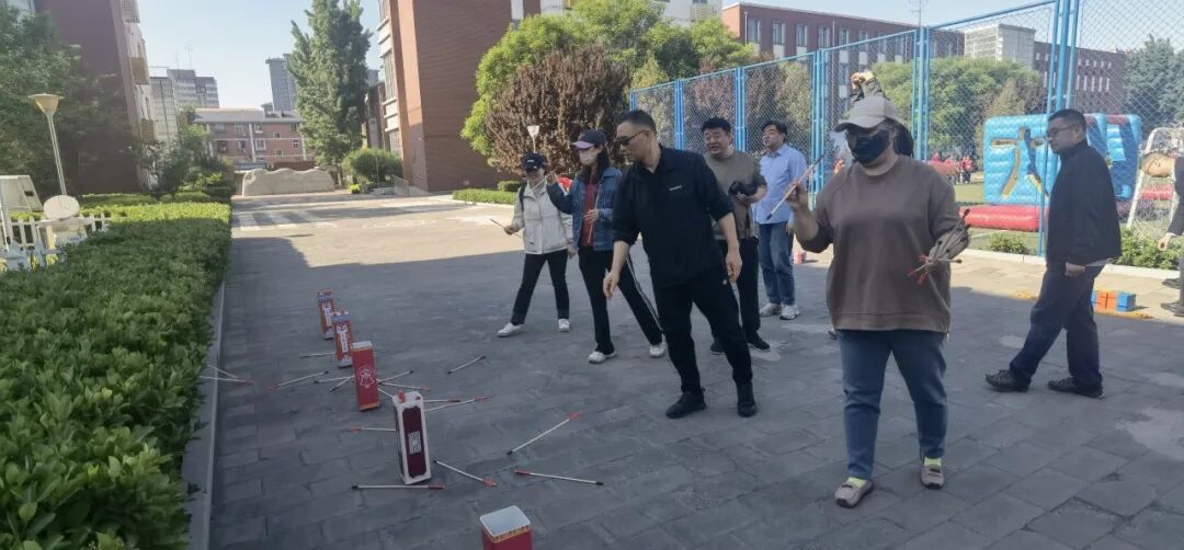 教职工趣味项目:本次运动会还特别设置了教职工趣味项目——投壶与合力搭建。老师们一改往日的严肃形象,化身“投壶高手”和“搭建达人”。投壶区内,老师们屏息凝神,精准投掷;合力搭建中默契配合,精准搭建。