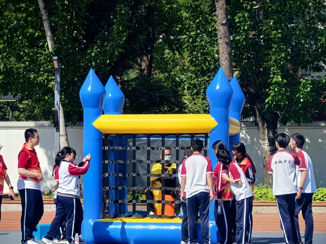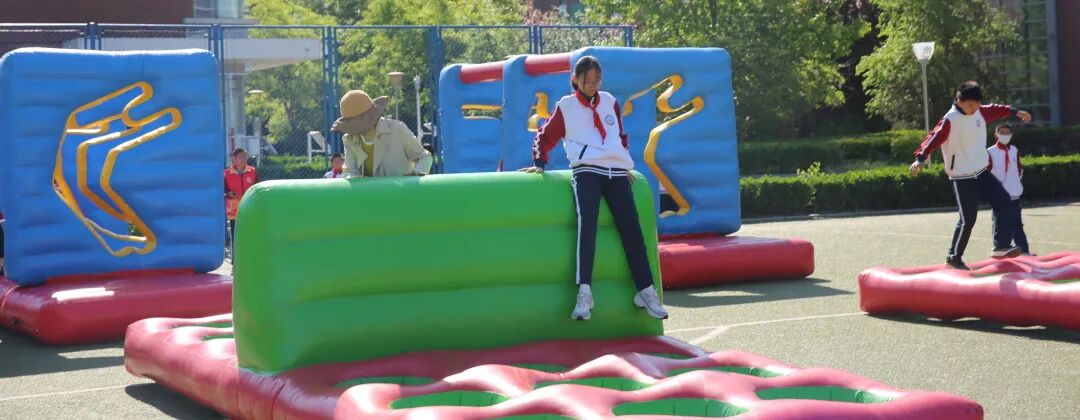 超级障碍赛:充气跨栏、匍匐前进、穿越人墙……同学们你追我赶,身姿矫健,场边呐喊声一浪高过一浪。