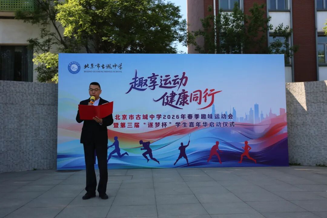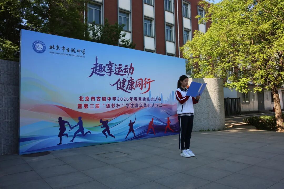 春风送暖,绿草如茵。4月30日上午,北京市古城中学2026年春季趣味运动会暨第三届“逐梦杯”学生嘉年华启动仪式在足球场上顺利进行。全校师生齐聚一堂,共同开启这场属于青春、属于运动、属于每一个人的盛会。