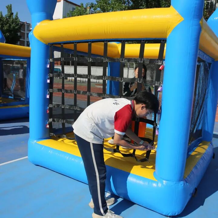 俄罗斯方块:队员们轮流手持充气积木块跑向背景墙拼接图形,每一次精准的放置都引发阵阵欢呼,团队协作的重要性体现得淋漓尽致。
