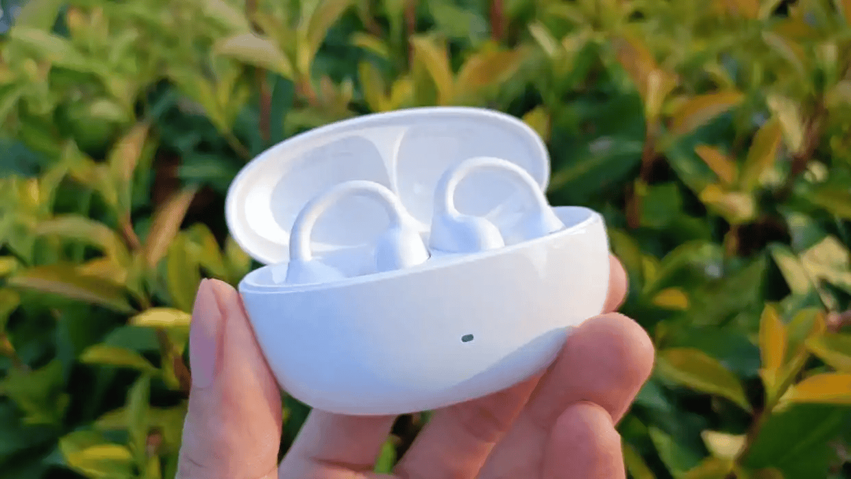 这款耳机的充电盒外观简约干净,没有多余装饰,观感清爽。机身采用钛丝 + 三角结构设计,佩戴时牢固不易脱落,单耳重量为 5.2g,即便长时间佩戴,也不会给耳朵带来明显负担感。