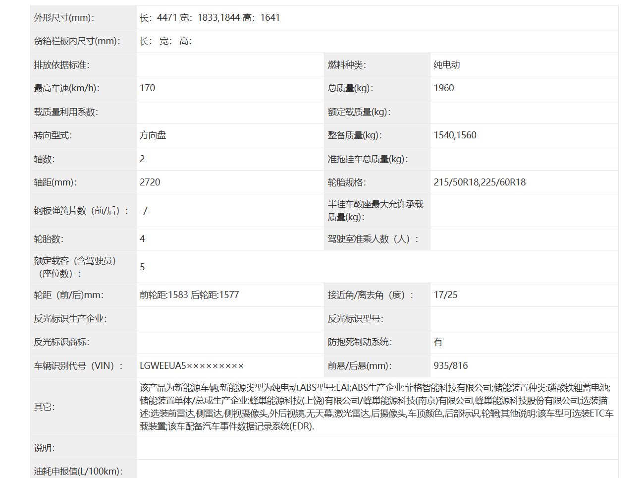 公告信息显示,新车将搭载最大功率150kW的驱动电机,电池则配备了蜂巢能源生产的磷酸铁锂电池。这一动力配置处于市场主流水平,能够满足日常使用需求。