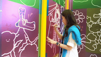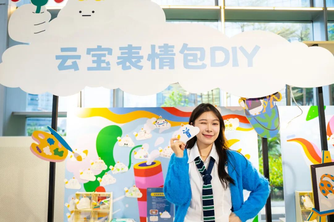 在云宝的大头贴上,用画笔亲自为云宝变装,创造出独一无二的「云宝表情包」粘贴在展板上,和所有天空之城来客比谁的创意更酷!