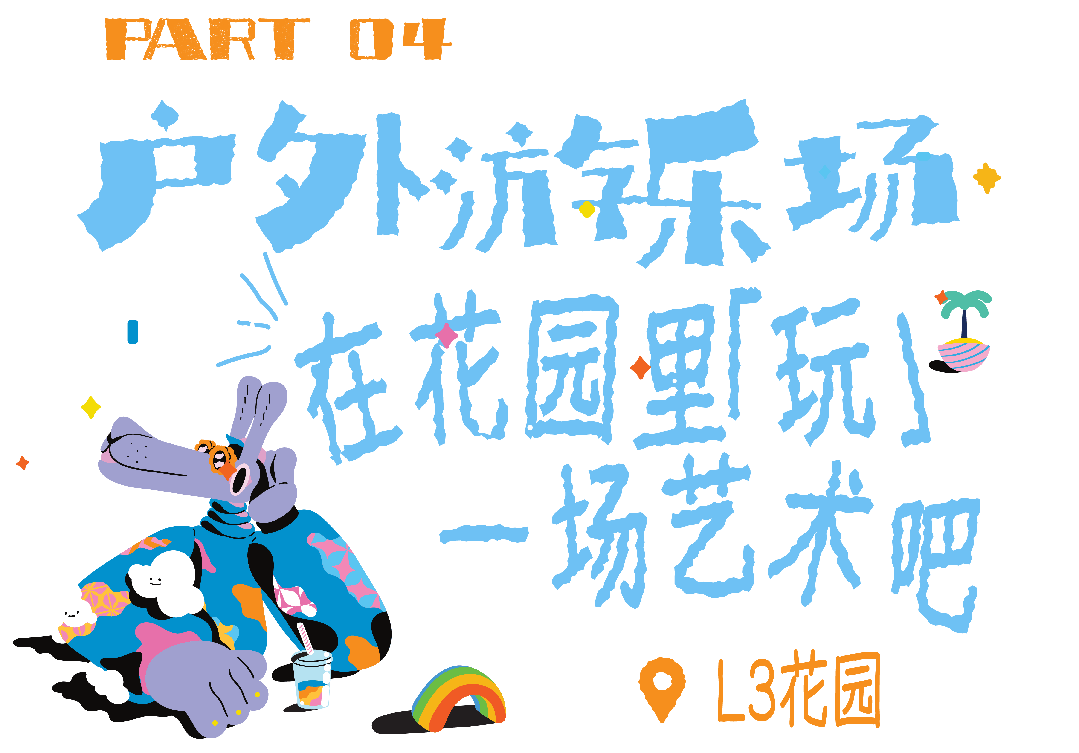 走出L3南玻璃盒来到户外的L3花园,我们也自动变身成了云端艺术家,可以在玩乐中自由地体验艺术。