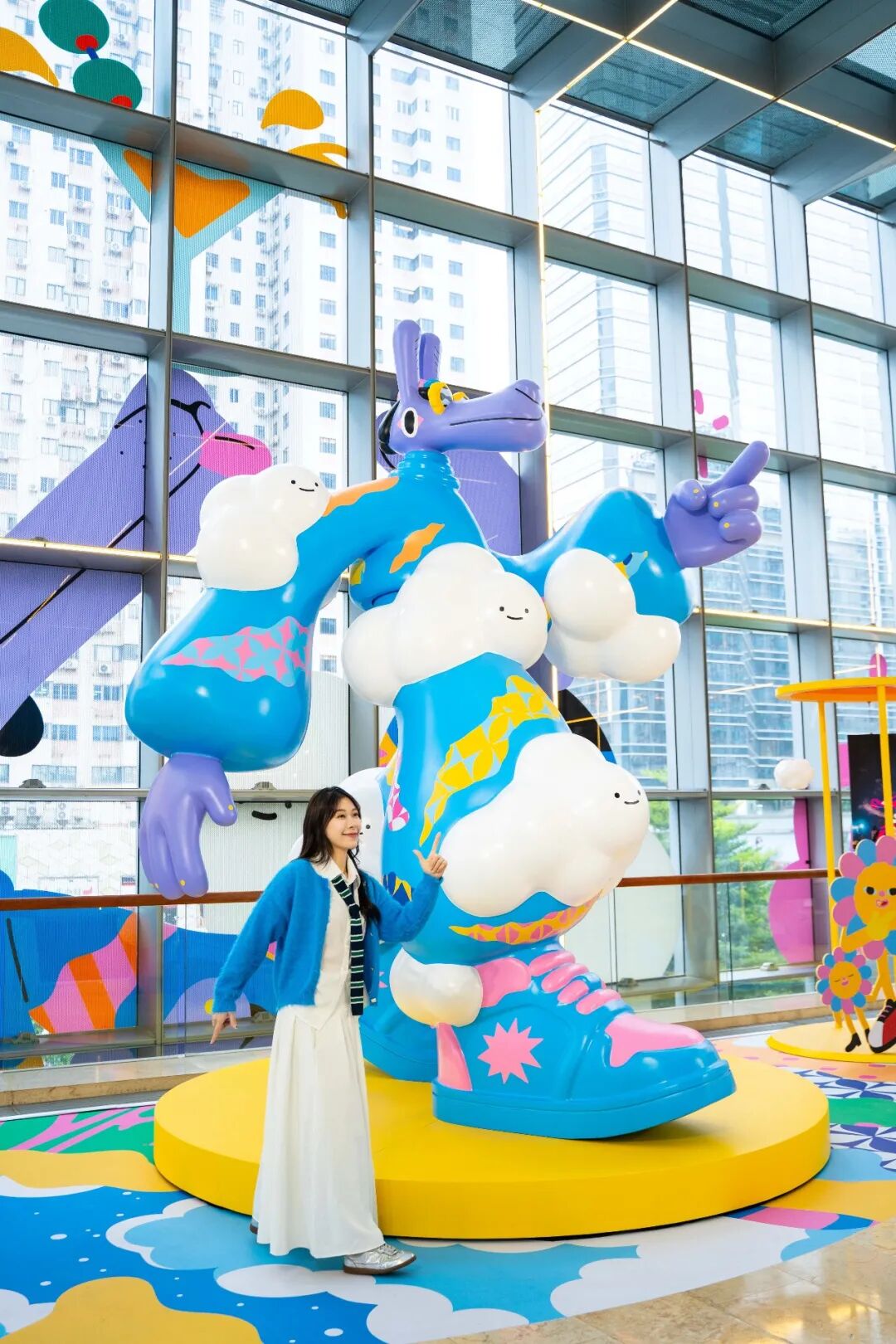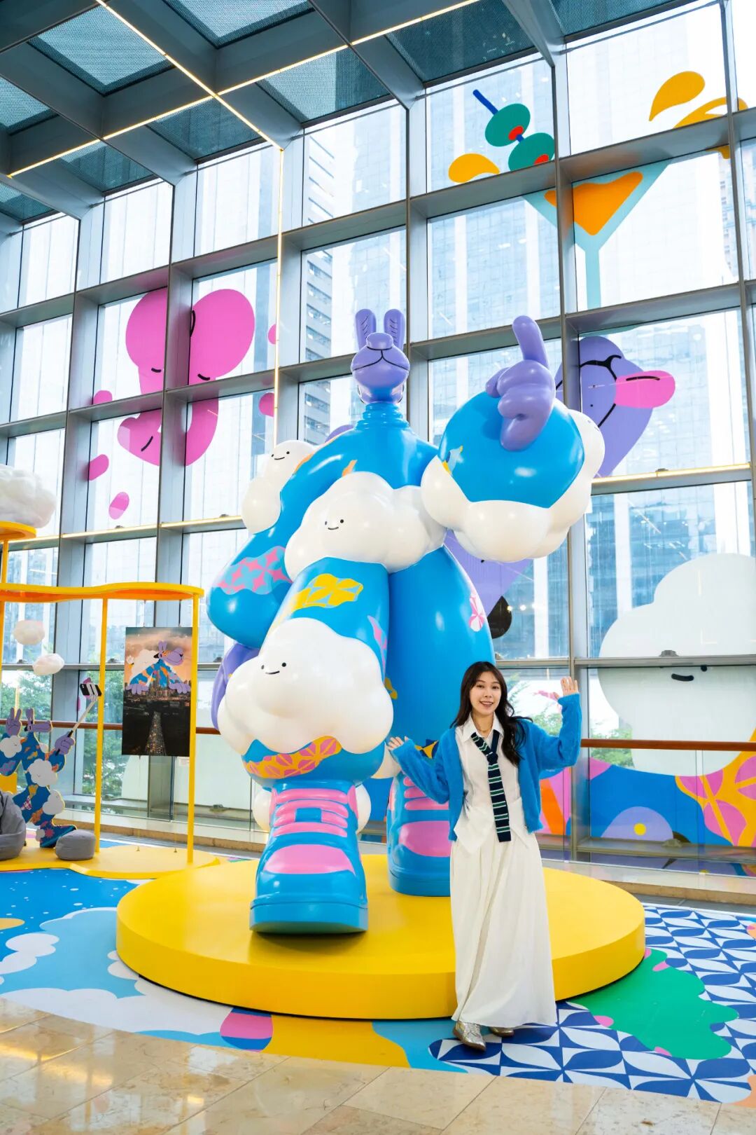 天空系硬糖风的OOTD、律动感十足的pose、巨型装置与可爱造型的反差……作为出片热门点,怎么拍都有潮酷街拍感!