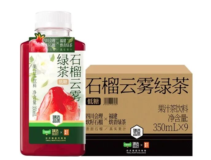 新品原料采用四川会理软籽石榴、福建烘青绿茶与横县茉莉花,添加真实果汁,每瓶含糖量小于一个苹果。