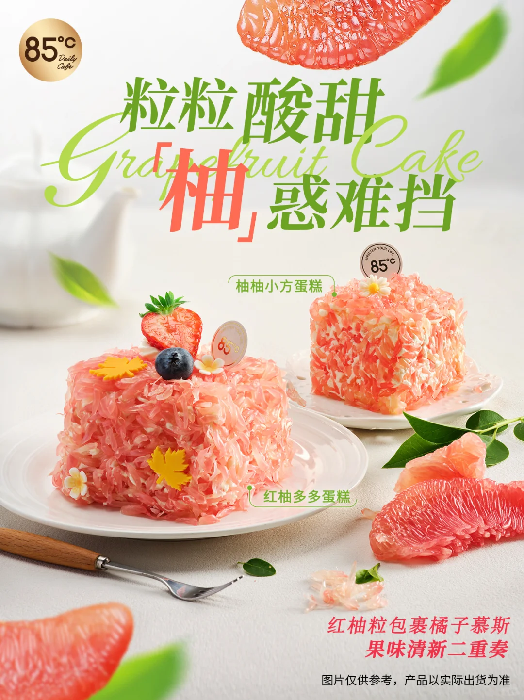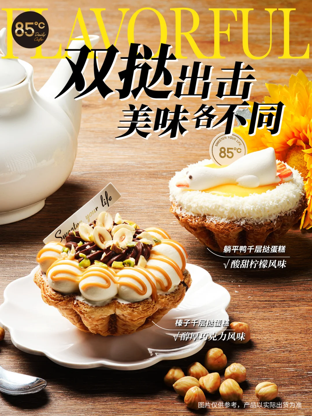 85度C上新「红柚粒橘子慕斯」、「榛子千层挞蛋糕」、「躺平鸭千层挞蛋糕」