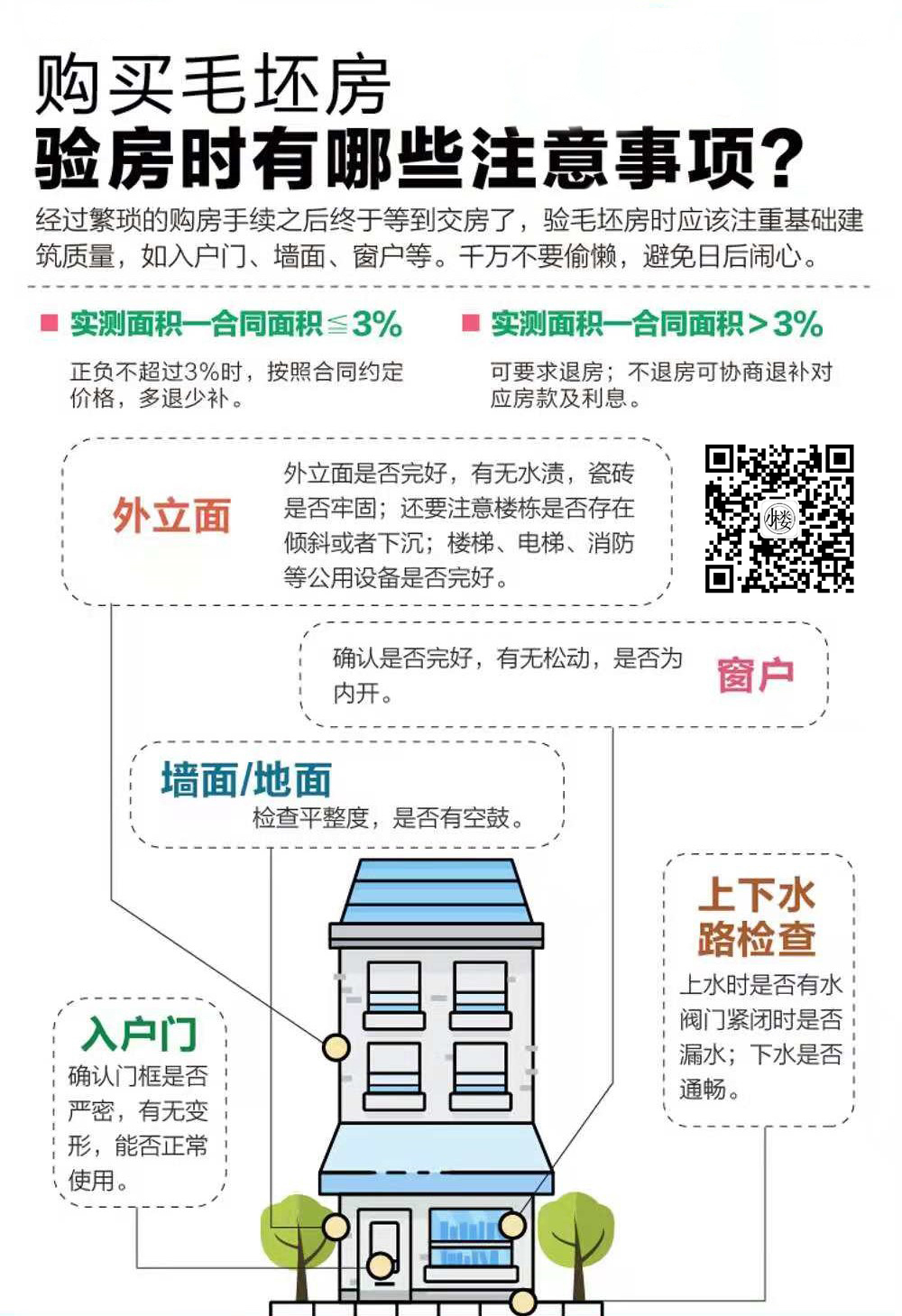 关于房屋验收的详细说明,这些步骤对于购房者来说非常重要,确保我们购买的房屋符合合同要求和质量标准。下面,小楼将对此做以下总结。