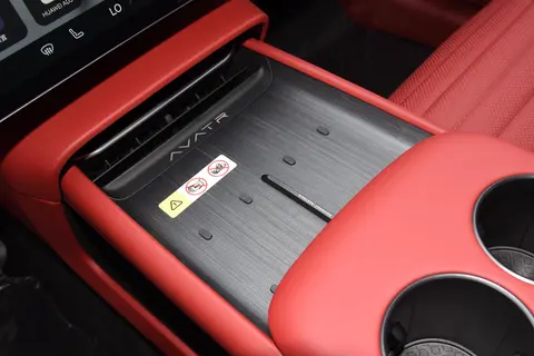 阿维塔06的空间也没有让我失望,之前还有点担心轿跑空间局促,实际体验阿维塔06后彻底打消了顾虑,车身尺寸长4855mm,宽1960mm,高1450mm,得益于2940mm的轴距,后排腿部空间达920mm。像小编175cm个头坐在后排,膝部距离前排座椅靠背约有2拳半的距离,即使是180mm的乘客,腿部也能有2拳左右的余量,可轻松实现半躺姿势,长途乘坐也不会觉得局促。尽管是溜背造型,但是通过C柱横梁后移和车顶曲线优化,后排头部空间仍达956mm。175cm的乘客头部距离顶棚约1拳,配合1.46㎡全景天幕,整体开扬感显著,不会有压抑感。后备箱常规容积416L,能轻松容纳多个20寸行李箱和背包,足以满足日常购物、全家出游行李的放置需求。后排座椅按4/6比例放倒后,容积可扩展至1266L,尤其是地板下还有30L隐藏储物格,像烧烤器具、婴儿折叠车等大件物品都能轻松放下,甚至可以当“移动仓库”使用。还有个前备箱容积70L,可容纳钓鱼具、工具等常用物品。车内设有多处隐藏式储物格,如中央通道下层、门板卡槽、后排中央扶手集成的储物格和杯架等,手机、钱包、饮料瓶等随身物品都能找到合适的存放位置,让车内更加整洁有序。