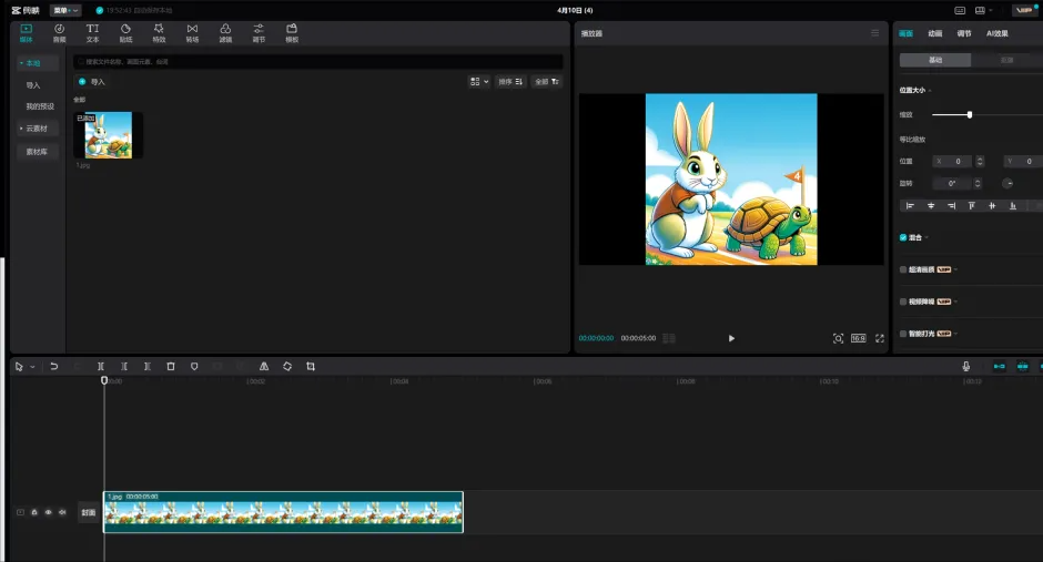 因为我们要做的作品不是图片而是视频,所以我们需要用到剪映工具来制作视频,我们现在把这张图片放到剪映中