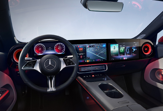 内饰造型略显夸张,三联屏由10.25英寸液晶仪表、14.6英寸中控屏以及14英寸副驾娱乐屏组成,营造出很强的科技感。内置奔驰最新的MB.OS操作系统,功能十分丰富,支持AI语音助手。此外,副驾乘客也可以通过手势控制实现与车机系统的交互。
