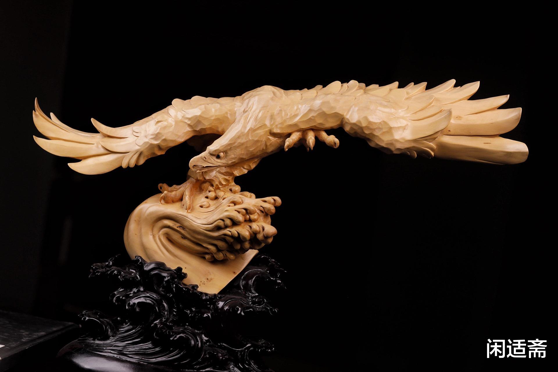 黄杨木 “鹰击长空” 摆件,以珍稀黄杨木为材,集材质之美、工艺之精与文化寓意于一体,堪称木雕艺术中的佳品。黄杨木生长缓慢,质地坚硬细腻,纹理温润致密,历经岁月不易变形开裂,是木雕创作的上乘之材,用其打造摆件,自带古朴雅致的质感,为作品奠定了高品质的基底。